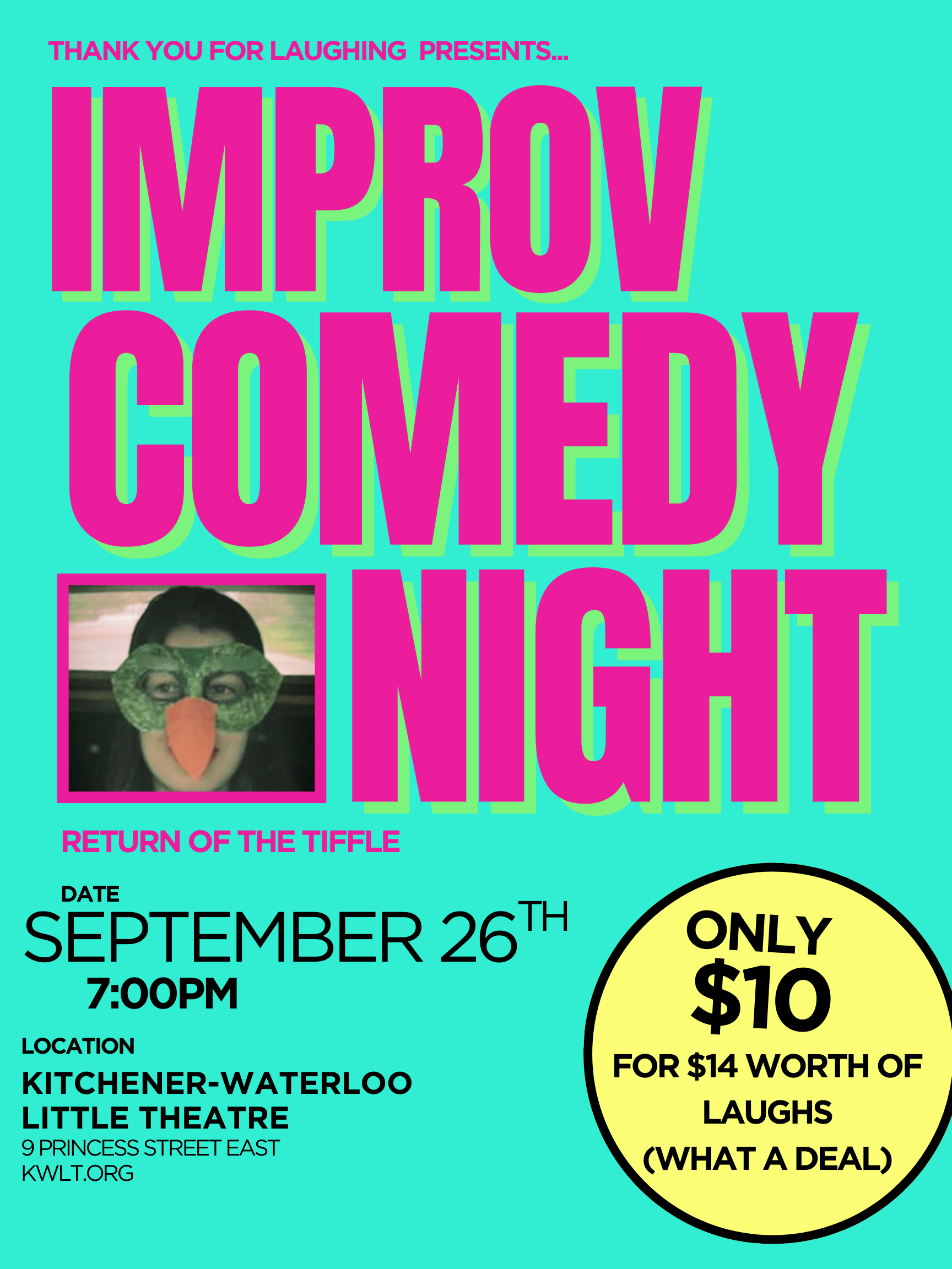 TYFL is once again coming out of retirement to put on a show at KWLT! Come down for a hilarious evening full of improvised comedy